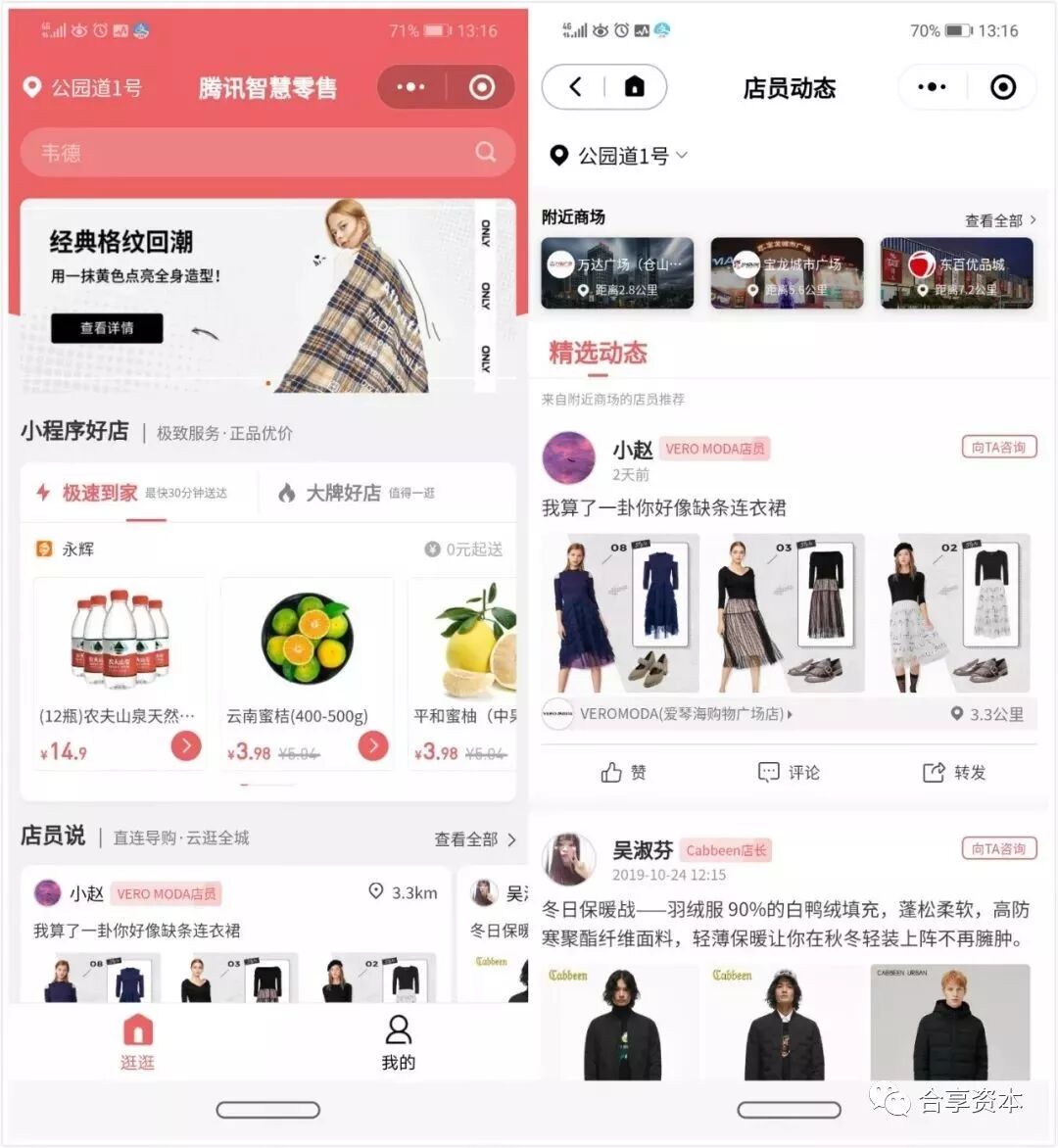 腾讯智慧零售小程序“店员动态”及“附近商场”