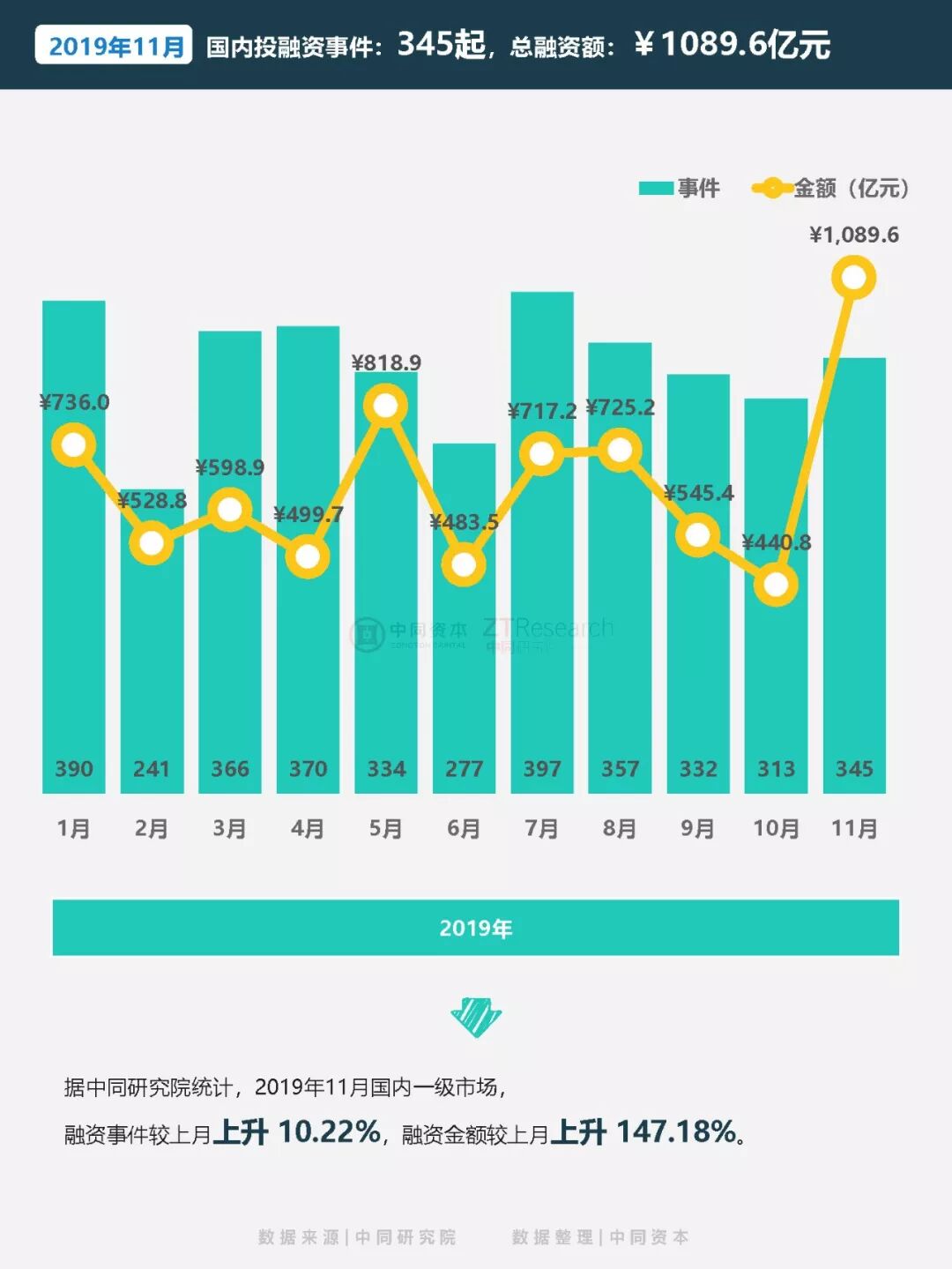 合享资本丨最近一周创投融资事件概况....据中同研究院统计,2019年11月国内一级市场融资事件较上月上升 10.22%,融资金额较上月上升 147.18%。