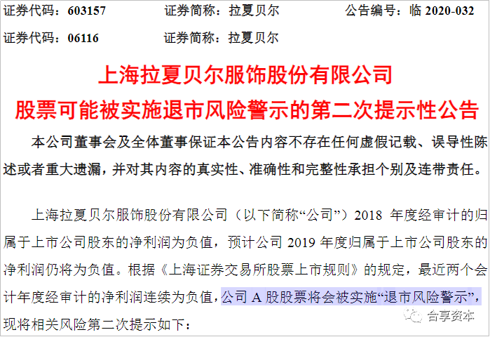 17年后的2020年,服装行业在新冠疫情期间所面临冲击,甚至超过了餐饮零售业。 恒大研究院估算,后者在春节7天的营收损失就超过了5000亿。 但拉夏贝尔没有了当年的冲劲。 3月23日,拉夏贝尔发布公告称:其A股股票可能在发布2019年财报之后,被上交所实施退市风险警示。 在此之前,拉夏贝尔年内已7次列为被执行人,创始人邢加兴也卸任了董事长职务。 数据显示,其2018年亏损2.45亿;2019上半年亏损4.98亿,全年预亏16-21亿。 17年后的拉夏贝尔,荣光不再。