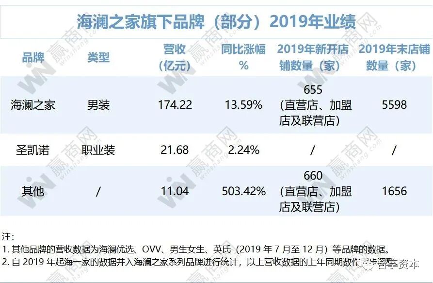目前海澜之家旗下共有海澜之家、圣凯诺、海澜优选生活馆、黑鲸、OVV、男生女生、英氏7个子品牌。其中: