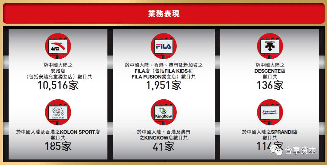 2019年,安踏创造了历史上的最佳成绩,收益、经营溢利、股东应占溢利三项指标均创新高,连续六年每年均保持双位数的增长:毛利同比增加47.1%至186.59亿元,毛利率上升2.4个百分点至55%,整体毛利率上升主要由于FILA分部贡献增加,而其毛利率相对地较高。品牌方面,目前安踏旗下拥有安踏、FILA、DESCENTE、KOLON SPORT、KINGKOW及SPRANDI多个品牌,截止2019年12月31日,各品牌门店数量如下:安踏表示,至2020年底,安踏及安踏儿童门店总数将达10200家至10300家,FILA、FILA KIDS及FILA FUSION门店总数将达2000家至2100家,DESCENTE门店数目有望达到160至170家,KOLONSPORT预计会有160至170家店铺。✦ 集团组织架构全面升级