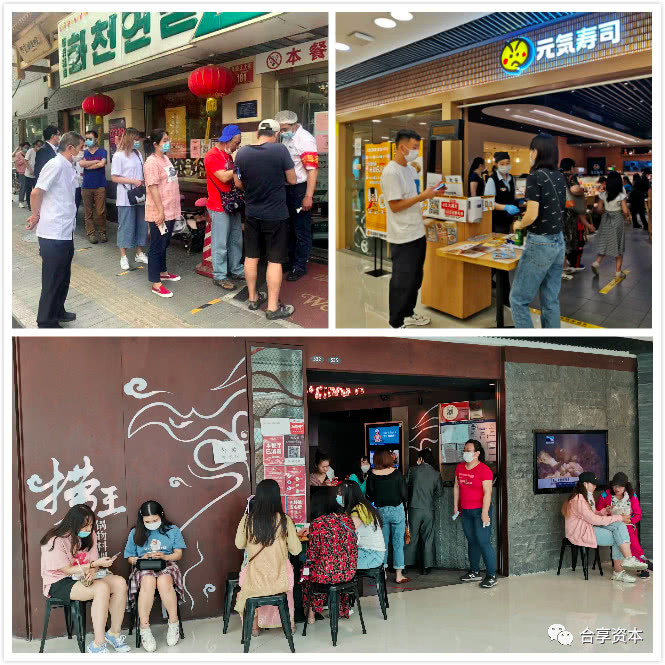 4月30日零时,北京将重大突发公共卫生事件应急响应级别由一级调整为二级。5月1日至4日,北京的东来顺、烤肉季营业额分别同比增长37%、13.3%;曲园酒楼、柳泉居等营业额翻一番。眉州东坡4月30日之前,销售额为去年同期40%-50%,“五一”期间恢复至去年同期58%-60%。据一家网上订餐平台的数据,小吃、快餐、茶饮交易笔数、营业额均同比增长1.5倍左右。“五一”假期,北京多个商圈均出现了排队就餐现象。5月2日下午,王府井apm内的炉鱼、太二、元气寿司、捞王,西单君太百货内的巴奴毛肚火锅、coco等品牌均需排队。在coco门店购买奶茶,需排队15分钟。北京餐企在“五一”期间还采用了一些新玩法,如线上直播、网红探店、发放消费券、社区摆摊销售熟食和半成品等。华天延吉餐厅在5月2日邀请网红“小仙晨”的探店直播,增加美团订单100多单。5月1日至3日,华天延吉餐厅外卖销售额同比上升349%,环比上升160%。胡大饭馆通过微信公众号推出了满200元减50元,满400元减100元等多种会员代金券,预计回购率可达10%-15%。日料品牌晚枫亭、民天酒楼、惠丰饺子楼、惠丰门丁肉饼、惠丰涮肉在门口或进入社区设置便民服务点,销售熟食和半成品,“五一”前三天销售额环比涨幅均超过30%。同和居则通过与“超市发”超市合推“名厨进店”活动,现售干烧大黄鱼,近70条干烧黄鱼半成品在半小时售罄。盒马生鲜“五一”前三天的销售额同比增长四成,小龙虾最受欢迎,活鲜小龙虾比去年同期增长近六成。值得一提的是,相较于往年,今年北京的消费者更倾向于户外郊游、公园野餐,引发了外卖和零食销售增长。据饿了么数据,北京地区送到公园的订单是4月同期的2.3倍,以烧烤、咖啡外卖为主。数据统计,“五一”期间,北京餐饮企业销售额降幅收窄13.7个百分点,复苏迹象初显。北京市商务局副局长刘梅英5月5日表示,北京餐饮采取线上线下结合、分时段就餐、多业态联合等方式,营业额已经恢复至同期水平的50.9%。节前的4月20日,上海就推出“五五购物节”,目的是提振消费信心、释放消费需求。包括餐饮企业在内的上海地区的商业企业以及美团、京东、拼多多等诸多平台推出的“五五购物节”相关活动,通过线上流量优势反哺线下卖场,实现电商与实体零售融合互动,激活消费潜力、驱动消费复苏。其中美团点评联合上海文旅局打造的上海“五五购物节”专项活动,汇聚了131家深受食客欢迎的特色餐厅,为消费者提供性价比高、有品质的美食。“五一”期间,“桂满陇-桃花院落”餐厅的招牌菜品鸡爪走俏,刚上线“五五购物节”活动,销量就提升了2.6倍;“哥老官重庆美蛙鱼头”加入“五五购物节”优惠券活动后,餐厅生意火爆,顾客要排两个小时队才能吃上。网红夜宵店阿文夜市豆浆油条在“五五购物节”中,推出了数字化“消费券”,消费者可以5折购买价值8元的“消费券”。4月30日至5月5日,该店订单量环比增长6倍。美团点评餐饮大客户总经理孙红霞表示:“美团研究院数据显示,上海的餐饮消费复苏率达到76.6%。”截至5月5日14时12分,据“上海发布”的消息,包括餐饮消费在内的“五五购物节”上海地区消费支付总额已超100亿元。“五一”期间,广州的重点品牌餐企中,广州酒家、陶陶居、麦当劳、肯德基、真功夫、必胜客等营业额均稳步提升,部分重点品牌餐企日均营业额恢复至去年同期七成以上。广州餐饮商家外卖营业恢复率达98%,线上营业额超3亿元。传统粤菜、烧烤、西餐、奶茶等成为最受消费者欢迎的外卖餐饮种类,九毛九、点都德、木屋烧烤、尊宝比萨、必胜客、周黑鸭、益禾堂等品牌餐企线上订单量大幅提升。成绩的背后,也有政府的推动作用。“五一”前夕,广州市商务局与电商平台合作举办“暖爱广州,千滋百味”活动,发动餐饮企业线下优惠、线上促销,点燃消费者的消费热情,活动共吸引全市680个餐饮品牌3400家门店参加。据统计,广州餐饮企业在5月1日至4日的总营业额超10亿元,达去年同期的六成水平,环比增加三成。全国:营业额恢复至同期56.86%,客流量至60.45%据中国饭店协会研究院的网上调查,与四月相比,“五一”期间,35.06%的餐企营业额增加。餐企日均营业额增长5.06%,客流量平均增长6.82%。总体来说,“五一”期间,餐饮企业复市率达到85.37%,营业额平均恢复至同期56.86%,客流量达到上年同期的60.45%,市场逐步回暖。线上部分,美团点评数据显示,“五一”黄金周较4月最后一周,全国餐饮线上日均交易增长量为85.7万单,增长幅度为47.2%。中饭协研究院的调查主要针对正餐、快餐、西餐、日料、火锅业态,结果显示,“五一”期间,火锅餐企营业额回升至上年同期69.62%,恢复较快;而西餐、日料、火锅企业较4月的日均增长分别为30.00%、27.14%、22.31%,也有较大恢复。商场/购物中心、旅游景区是五一期间消费活跃区。此次调查最引入注目的是,6.29%的餐企营业额实现了逆势增长,成为疫后恢复的佼佼者。在深圳,奈雪的茶、喜茶、星巴克、都可等茶饮类店门口排队人数激增, coco都可、快乐柠檬、大卡司这些奶茶店门口也排起了队。在长沙,网红店“茶颜悦色”店员黄欣琪说:“‘五一’这几天的生意比过年前还要好,营业额突破了历史记录。”在厦门,“五一”最青睐的餐品是奶茶;在武汉,奶茶外卖环比增加一倍。美团数据显示,奶茶位于餐饮订单的前三位。 “五一
