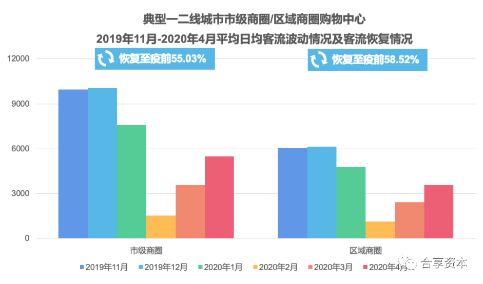 广东合享投资管理有限公司丨实体商业,临近警戒线前言 消费是中国经济第一拉动力,这一现象已持续6年。2020年是第7个年头。 根据大数据统计,1998年至今,中国形成的商业物业面积约14亿平方米,其中全国购物中心数量(建筑面积3万平方米以上)约为4800家,总规模约4.74亿平方米。这些存量物业既是城市经营的重要资产,更是消费扩容、扩大内需的重要渠道。 2020年初,突如其来的新冠肺炎疫情,对经济社会活动按下“暂停键”。疫情严重影响了线下实体商业的正常运营,令项目方、品牌商都陷入前所未遇的艰难时刻。然而商业的本质又提醒我们——只要地理位置还在,只要持续繁荣的、流动的人口还在,那么实体商业就会在坚韧中不断进阶。 经研究发现,经过6年的高速发展,实体商业自身积累了许多问题,同时疫情的出现,加剧了行业下行的速度。目前,实体商业的多项运营指标已跌落至警戒线附近。未来中国实体商业将向何处走? 购物中心处境艰难 经营损失惨重 据大数据统计,2013-2019年全国新开业购物中心平均增速达10%。截至2019年底,全国购物中心总规模达4.74亿平方米。 其中,一线城市购物中心步入成熟期,即将迎来下一阶段革新或衰退的分化;二线城市购物中心随着城市化红利逐渐消失,资本入局,收并购规模快速上升,竞争加剧。今明两年,全国计划开业购物中心数量1973家、体量约17948万平方米(往年实际开业率为60%,即实际开出项目/计划开出项目)。存量还未消化,增量持续入市,中国购物中心行业生存焦虑愈发真实。 然而疫情更让购物中心“雪上加霜”:待开业项目全面延迟开业,平均延迟时长9个月;已开业购物中心客流减少、掉铺率和退租率大幅提高,这都给购物中心造成惨重的租金损失。 01 空置率超警戒线, 全年租金损失达20% 行业公认的空铺率警戒线为20%,疫情期间,全国典型购物中心平均空置率(空铺面积/总铺位面积)为21.10%,超过警戒线。 2020年平均空置率同比2019年下半年上升5.4个百分点,并且截至踩盘调研日,购物中心整体尚有30%的铺位未营业,因此可以预见下半年全国购物中心总体空置率还会继续攀升,对购物中心的租金损失约10%。而因为在2020年1月份,全国范围内购物中心给予品牌商2周-2个月不等的免租期共克时艰,整体平均租金损失10%。因此可以预计,全年租金损失达到20%,甚至更多。 02 华中、东北营业比例最低 处境艰难 从区域开业营业情况来看,二季度情况明显好转。其中,华南地区样本购物中心恢复情况相较良好,但华中、东北地区样本购物中心处境仍然艰难。 作为全国疫情“重灾区”的武汉,“解封”后其客流稳步增长。4月,随着经营时间、各业态门店逐步恢复营业,以及一系列积极的市场动作:如华夏幸福武汉长江中心项目正式动工;融创中国签约武汉黄陂长江文旅城项目;永旺购物中心签订意向落户洪山区;沃尔玛、盒马、茶颜悦色等品牌商积极进驻,武汉商业将迎来更大的回暖空间。 03 客流仅恢复至疫前66% 一线城市复苏慢 从4月客流情况看,全国一二三四线城市购物中心的客流恢复约66%,但受疫情期间顾客场内停留时长缩短及消费频次降低影响,消费增长仅恢复到疫前50%左右。 因疫情辐射范围更大、管控措施更严、民众安全意识更强等原因,一线城市的购物中心客流恢复相对较慢,仅恢复至疫前平均水平的58.6%(疫前客流水平以2019年11-12月平均日均客流为基准),距全面复苏尚需时日。 04 市级商圈/高档/大体量项目 受影响程度大 随着疫情防控常态化,消费半径将近一步缩短,消费需求也将偏向刚需,市级商圈购物中心整体恢复情况不及区域商圈;“报复性消费”没有如期而至,奢侈品消费持续遇冷,高档/中高档购物中心较中档/大众化购物中心受疫情影响更大;大型购物中心体验业态丰富,电影院、KTV、儿童游乐园等引流业态尚未开业导致商场客群流失严重,且当下消费者线下消费目的明确,“慢逛”意愿降低,使大体量购物中心比小体量购物中心影响大。 05 待开业项目几乎全部延期 平均延迟开业9个月 疫情前购物中心平均开业率约为60%(实际开出项目/计划开出项目),平均延迟6个月。因疫情影响,购物中心招商率严重不足,几乎所有未开业的实体商业都面临延迟开业情况,而开业率预计会降至40%以下,平均多延迟3个月,造成的直接经济损失是减少了3个月租金收益。 06 74.9%的购物中心 停止招聘或裁员降薪 面临巨大经营压力,调研显示,4月份,购物中心在人力方面停止招聘或裁员降薪的比重高达74.9%。其中,东北、华中、华东地区裁员的比例靠前,分别达2成或接近2成。 样本购物中心人力计划调整 07 线上渠道效果未有效发挥 数字化能力待强化 调研显示,疫情期间,样本购物中心无线上渠道的比例超过3成,而线上线下销售比1:9的比例接近4成。此外,即便拥有线上渠道,仅不到5成的购物中心线上销售额有所增加。疫情期间,绝大多数购物中心线上自救效果不佳,线上渠道未能有效发挥,其数字化水平远低于品牌商。 线下客流受疫情冲击一蹶不振,发展线上渠道成为购物中心自救的重要举措。在疫情期间,部分购物中心推出微信朋友圈、“云逛街”、直播购物、360°VR购等购物新模式,扩大销售渠道,但绝大多数购物中心的线上自救效果不佳。 品牌商经营复苏尚需半年 现金流断裂风险高 购物中心高速发展六年,行业进入运营调整期。2019年,上海有